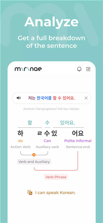 Mirinae acts as your personal Korean AI teacher, helping you understand Korean sentences and texts with ease. Simply input any Korean text, whether it's from K-pop lyrics, K-drama subtitles, or everyday conversation, and Mirinae will provide comprehensive translations, breakdowns of grammar patterns, explanations of particles and honorifics, verb conjugations, idioms, and more. Dive deeper into the language by exploring alternate word definitions, examples, uses, related patterns, and cross-references to learning materials.