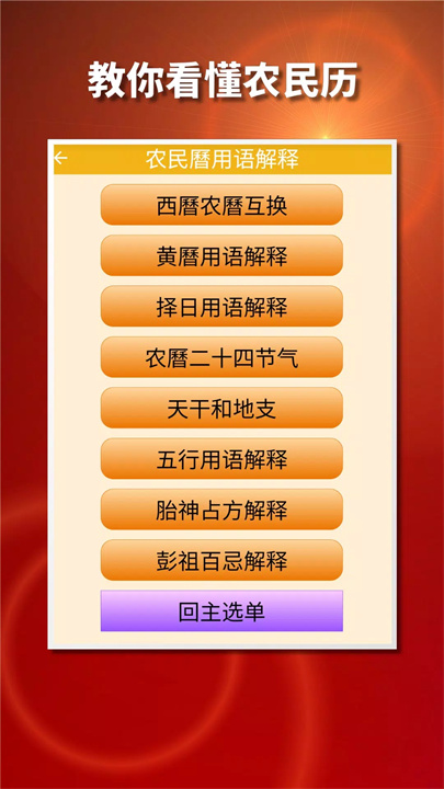 通过简单明了的解释,让用户快速掌握黄历中常用的术语和概念,帮助用户深入了解传统文化内容,即使是新手也可以快速上手。