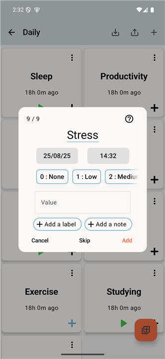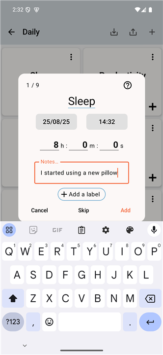 A: You can record values, counts, or daily occurrences. Whether you need to log how many hours you slept, the number of steps you took, or simply mark if an event happened, Track & Graph accommodates both numerical and yes/no style data entries.