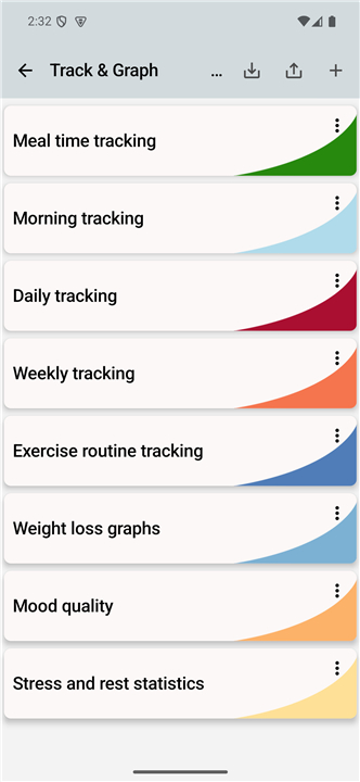 • Create custom tracking items tailored to your personal goals.