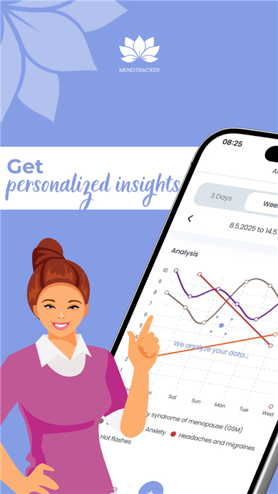 • Menotracker goes beyond simple logging by using AI to transform your daily health data—from wearable metrics to mood shifts—into actionable insights.