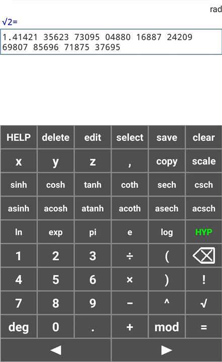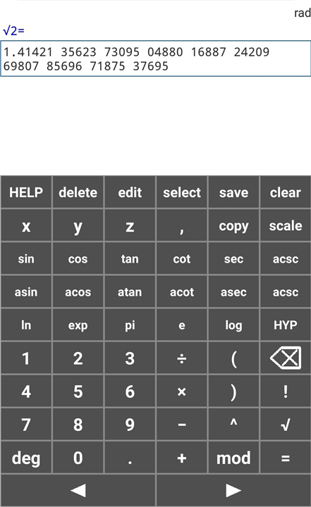 • Square root calculations with extended decimal places.