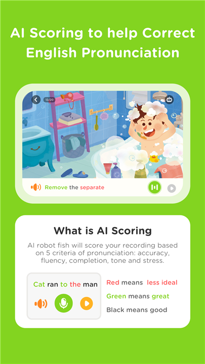 • Use AI pronunciation scoring to help kids speak English more naturally and confidently.