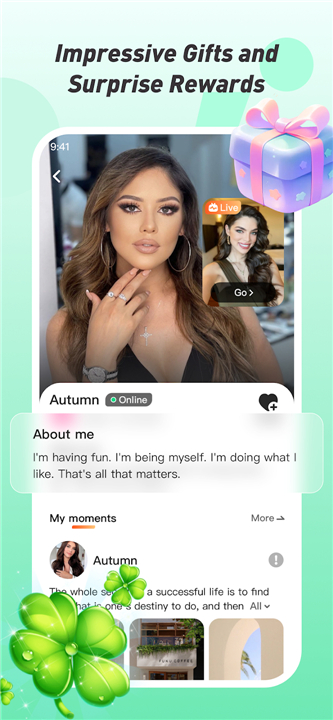 • Show your profound appreciation and support for your favorite streamers by sending them a wide array of gorgeous animated gifts, which also enhance the interactive experience.