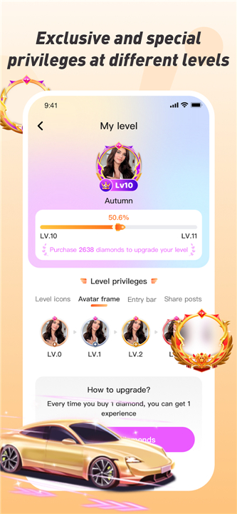 • As you actively participate and engage within the SeeYa Live community, your user level will ascend, unlocking a range of exclusive and special privileges.