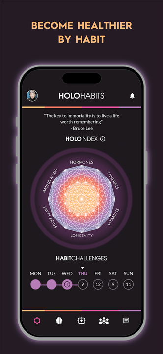 • Master your health with precision through Holohabits, a community-focused platform designed to turn scientific data into daily success.