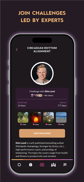 A: These challenges allow you to learn directly from professional biohackers and health experts through structured, easy-to-follow programs. You will receive specific routines focused on nutrition, physical training, and recovery, ensuring that your daily actions are backed by professional knowledge and proven results.