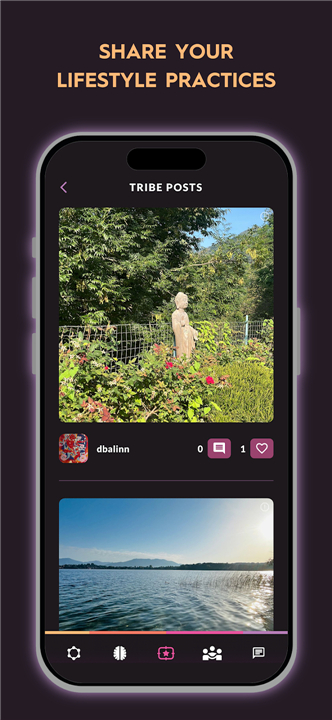 • Share your daily practices, celebrate milestones with likes and comments, and stay motivated with your friends.