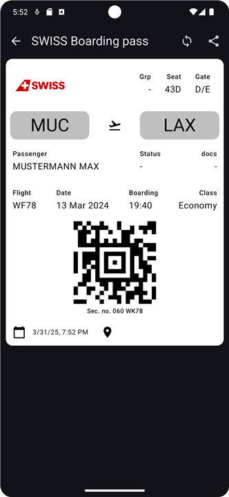 • Display and Interaction: Shows all relevant pass details including text, colors, and barcodes or QR codes for quick scanning.