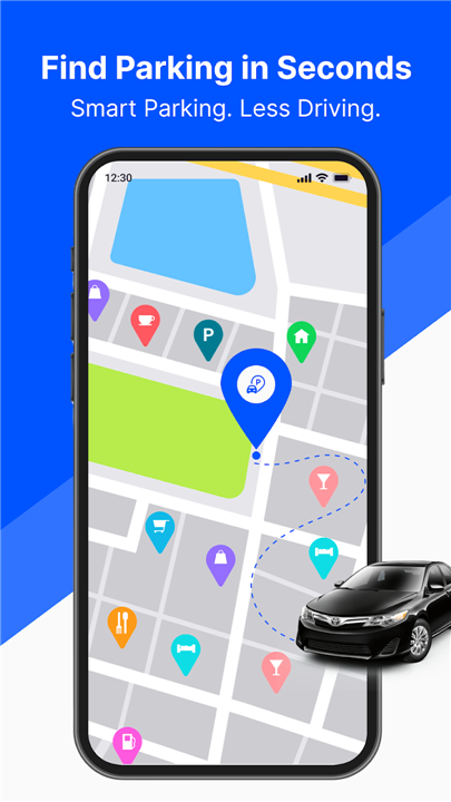 • Smart Parking: Effortlessly locate available parking spaces nearby, saving you precious time, fuel, and stress in bustling urban environments.