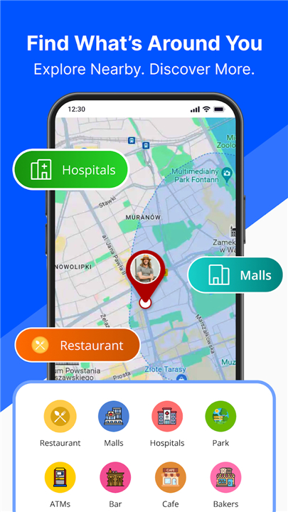• Nearby Discoveries: Quickly find restaurants, hotels, fuel stations, hospitals, and points of interest around you, making local exploration seamless and convenient.