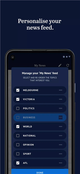 Yes, the My News feature allows users to personalize their feed by choosing topics and order.