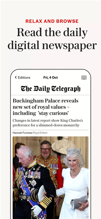 Read each edition of The Telegraph from 5 AM every day. Whether you prefer the Daily Telegraph or Sunday Telegraph, the app gives you full access to the complete newspaper, including all your favorite sections, magazines, and supplements such as Stella and The Telegraph Magazine.