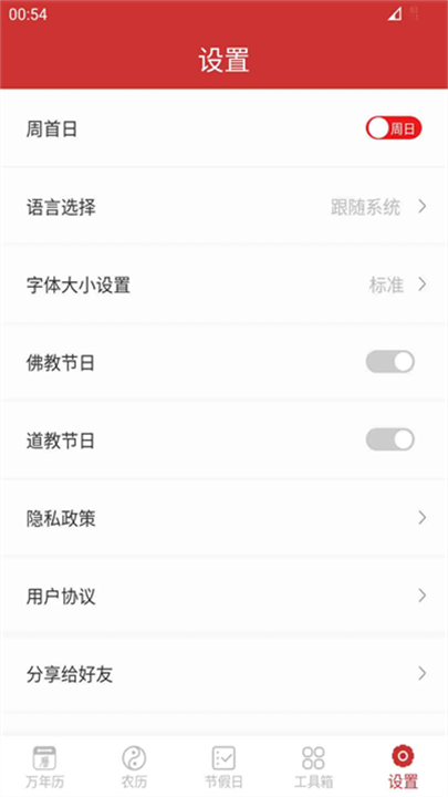 支持根据个人习惯调整周一或周日作为一周的开始,字体大小等设置,让界面更加个性化。