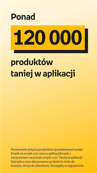 Up to 100 PLN off your in-app purchase. Over 120,000 products cheaper! Download the latest version of Empik - udane zakupy to enjoy new features and updates immediately!