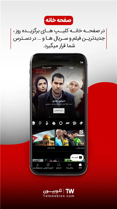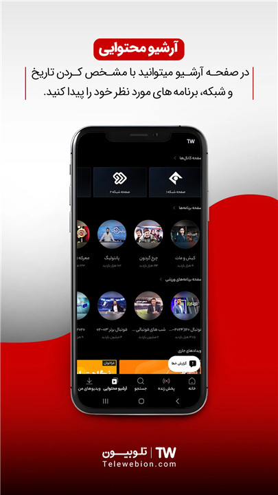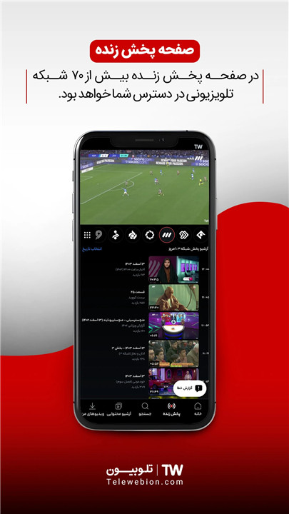 Telewebion goes beyond just live streaming. It features a comprehensive archive of content, ensuring you never miss a moment. The library includes a rich selection of series, shows, football matches, and sports programs, along with their highlights. This allows you to revisit past episodes, relive cherished moments, or explore new content whenever it suits you.