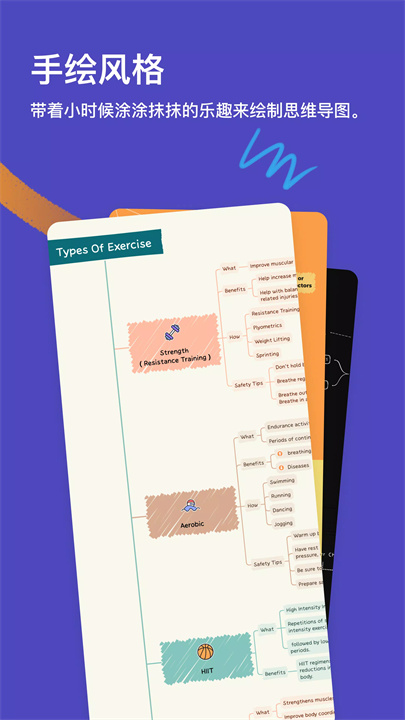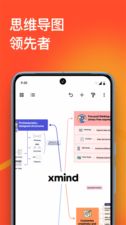 应用内提供了30多种精心设计的模板,适用于各种使用场景,确保用户能快速上手并直接进入工作状态。无论是树形图、逻辑图,还是鱼骨图、时间轴等多种形式,Xmind都能满足不同思维展示的需求。特别的是,Xmind支持在同一张导图中混用多种结构,帮助用户组织和呈现复杂的想法。
