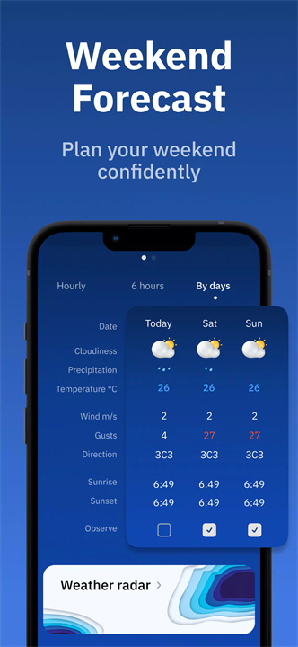 提供降雨、降雪和极端天气的及时警报,让你在天气变化时不再措手不及。