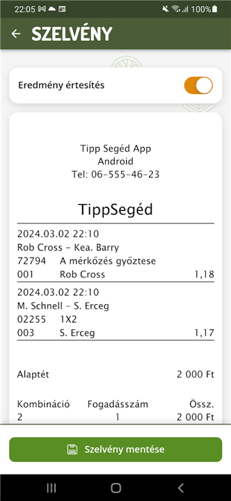 A: No, Tipp Segéd does not connect to any betting service or lottery network. It functions solely as a planning and tracking tool. To make an actual wager, you must take the slip you created in the app to an authorised retailer where you will pay and receive a real ticket.