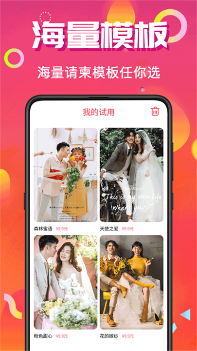 电子请帖APP是一个专为各种庆祝活动设计的请柬制作工具。例如是婚礼、生日派对,还是宝宝满月、企业活动等场合,用户都可以从丰富的精美模板中挑选自己喜欢的款式,轻松编辑并个性化定制,打造专属于你的电子请帖,快速、方便地将邀请函分享给亲朋好友。