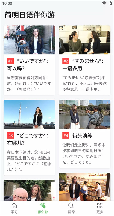 [简明日语]——不仅为学习者提供了一个便捷的日语学习工具,更通过实际的情景对话和标准发音,帮助用户在实际生活中自信地运用日语,提升语言能力。真实场景模拟,学习日常会话最实用!