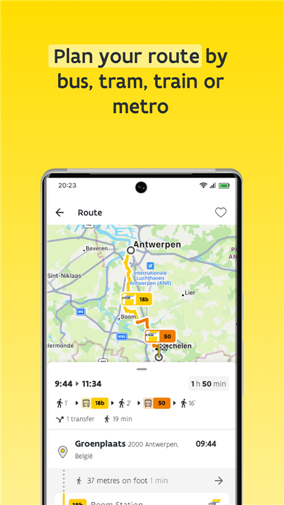 A: You can absolutely plan journeys that include other transport providers! The app offers integrated route planning, seamlessly combining routes and schedules from De Lijn's network with those of other major operators like MIVB (Brussels public transport), NMBS (National Belgian Railways), and TEC (Walloon public transport). This ensures you always find the most efficient connection across the region.
