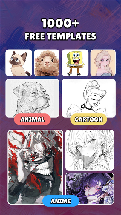 A: The app offers a personalized template feature that allows you to import photos directly from your phone’s gallery and convert them into sketchable outlines. This is perfect for artists who want to move beyond pre-made designs and create custom portraits or unique artwork based on their own photography and cherished memories.