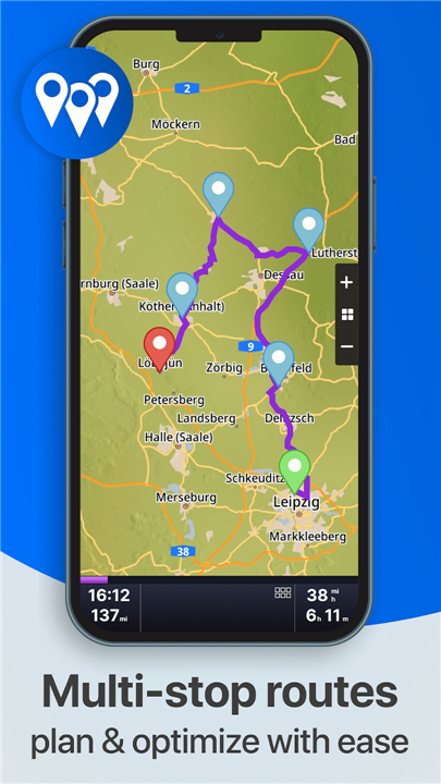 • Up to 150 waypoints with drag-and-drop order or automatic optimization