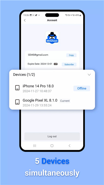 MrGhost VPN allows you to protect up to five devices simultaneously, giving you the flexibility to secure your phone, laptop, and other devices. Compatible with various platforms including Android and iOS, it ensures that all your devices stay protected.