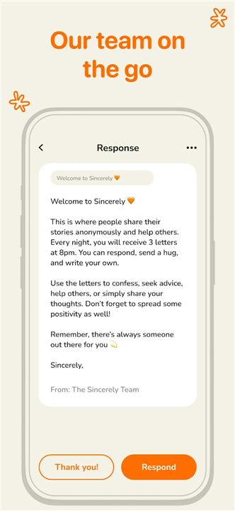• In a modern world where social interaction often feels superficial or performance-based, Sincerely provides a quiet corner of the internet where vulnerability is welcomed and connection is rooted in empathy.