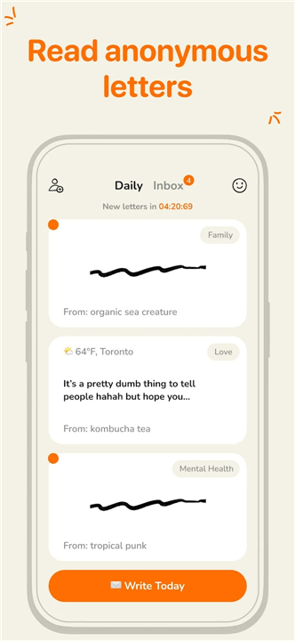 Read & write anonymous letters to help each other Download the latest version of Sincerely - Off Your Chest to enjoy new features and updates immediately!