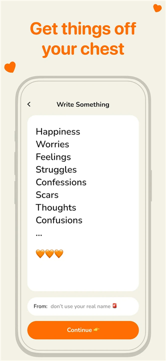 • The platform encourages users to transform their heavy secrets, unanswered questions, and daily struggles into written words.