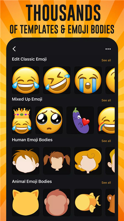 With Emoji Maker, creativity becomes an immersive experience: Let your imagination run wild as you design emojis that are as EXTRA as you are. Careful not to indulge too much in this rabbit hole, or you may find yourself missing appointments, ignoring texts, and forgetting to eat!