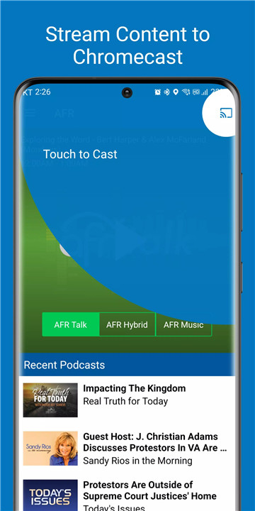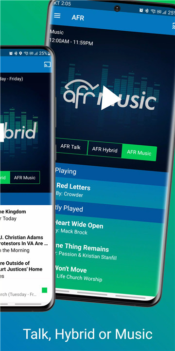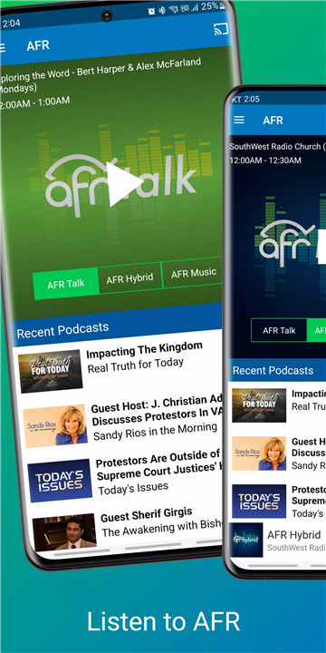 AFR offers three distinct formats to suit different preferences: AFR Talk, AFR Hybrid, and AFR Music. Whether you enjoy engaging talk shows on politics, culture, and Christian values or prefer inspiring music, AFR has something for everyone. Tune in to your favorite stations or explore new content within the app.