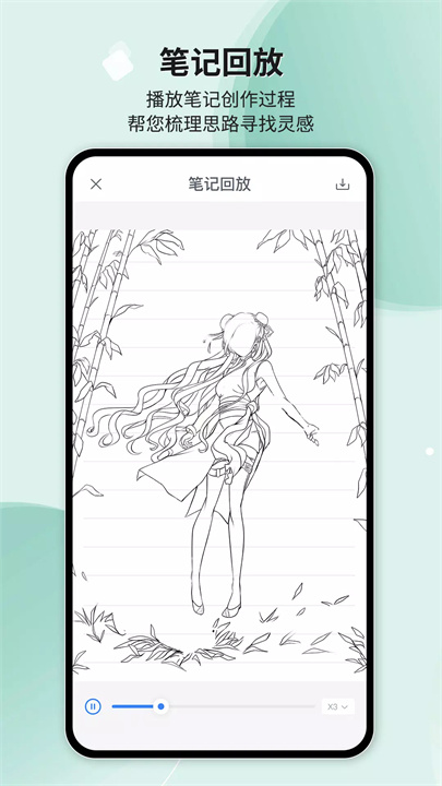 你可以重温自己的思路与创作过程,Huion Note提供笔记回放功能。通过回放书写过程,你可以更加清晰地理清自己的思维脉络,同时,这个功能还可以保存为视频并存储在相册中,让你随时查看,分享你的创意旅程!