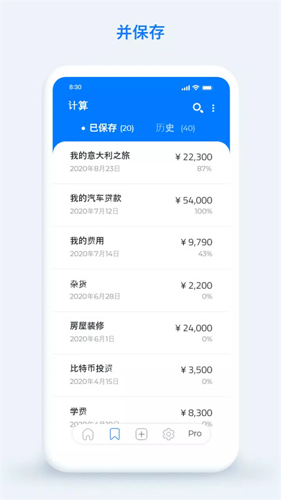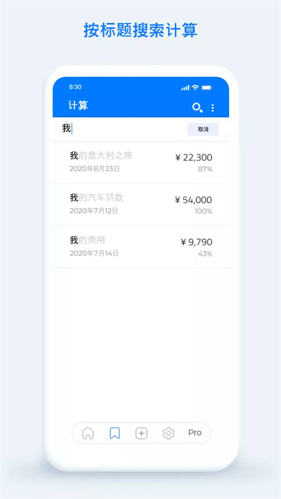 您可以按名称和日期保存计算结果,还可以根据需要搜索和排序计算结果。