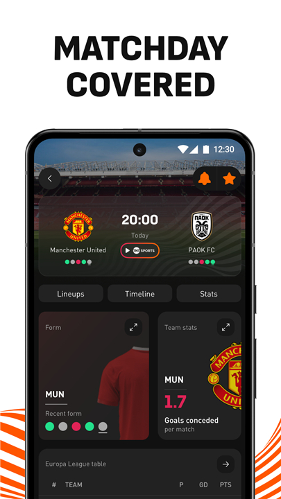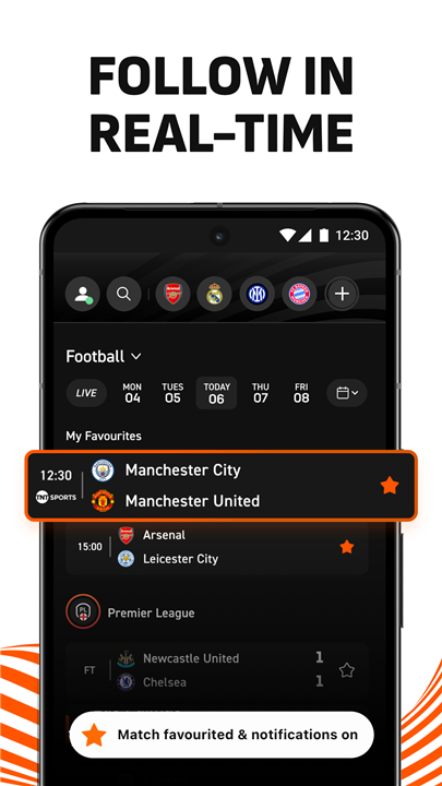 • Access match details and live scores across football and soccer competitions like the Premier League, FA Cup, UEFA Champions League, LaLiga, Serie A, Eredivisie, and Bundesliga.