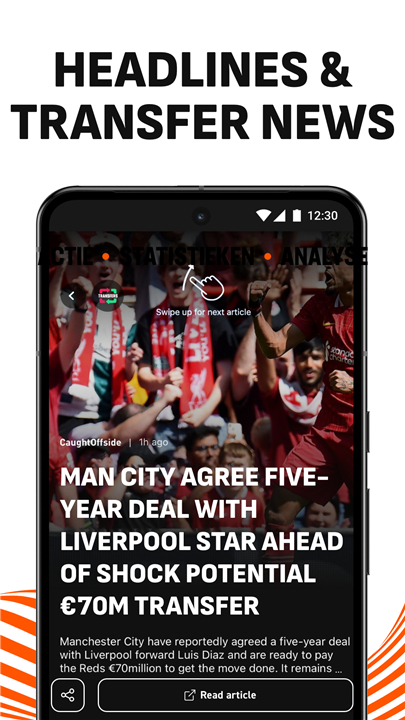 “For You” features include the newest insights, football news, stats, results, post-match reviews, player transfers, and previews for upcoming fixtures from leagues such as the Premier League, UEFA Champions League, LaLiga, Bundesliga, Serie A, Primeira Liga, and Eredivisie.