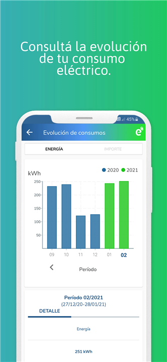 • Check the evolution of your electricity consumption to better understand your usage habits.