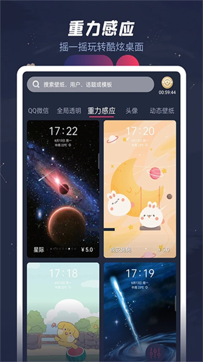 提供动态壁纸、静态壁纸、重力感应壁纸、透明壁纸等多种类型,适合不同用户的需求。