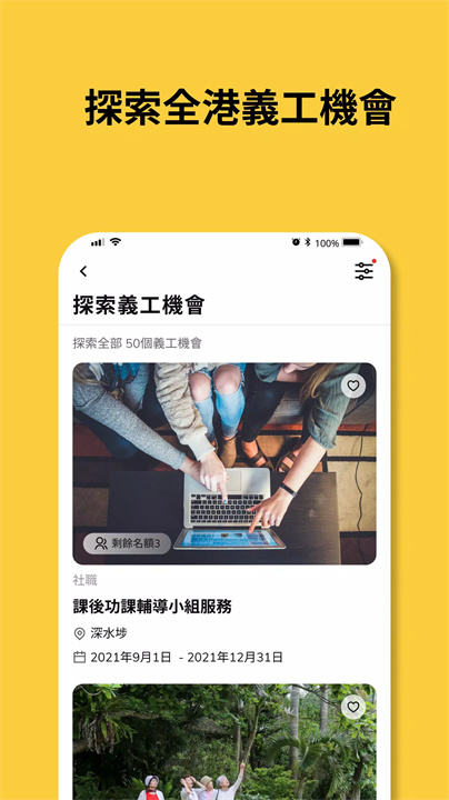 社职与多个非政府组织(NGO)和社区合作伙伴建立了紧密联系,为用户提供多样的义工服务机会。不论你有多少空闲时间,或是你希望贡献哪些技能,社职都能帮助你找到适合的义工活动,轻松开始付出行动,帮助需要的人。