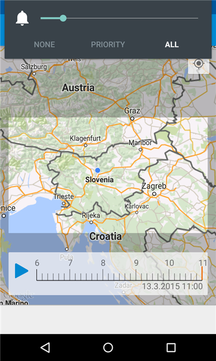 • Rain Radar Overlay: Displays ARSO’s official rain radar maps directly over Google Maps, allowing users to visualize precipitation patterns in real time.