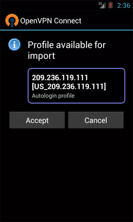 打开易联Ovpn后,点击刷新按钮,选择您想连接的服务器,点击“Accept”导入OVPN配置。
