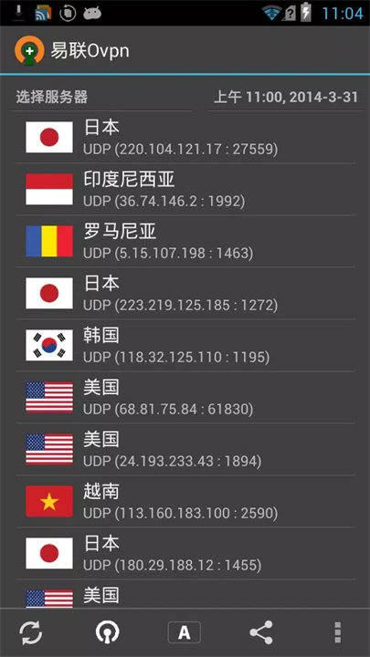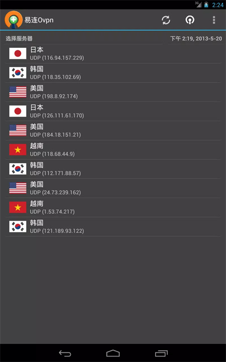 2、打开易联Ovpn,点击“刷新”按钮,查看最新的服务器列表。