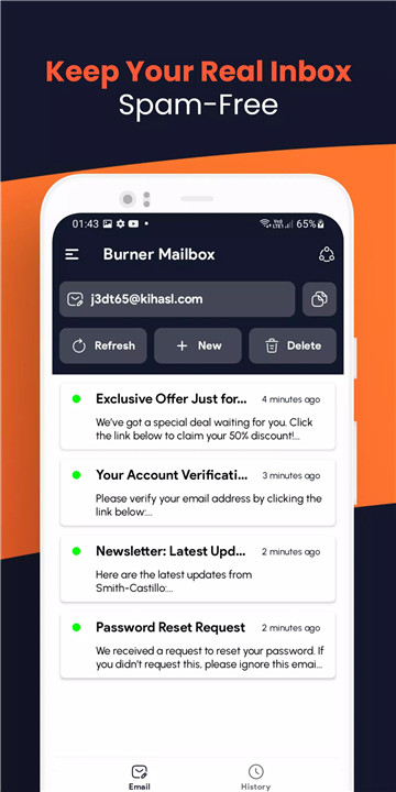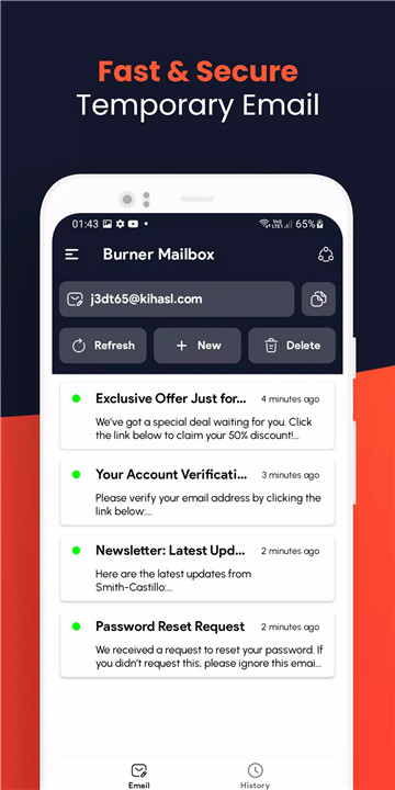 Once you’ve created your temporary email address, you can easily access your inbox and view emails directly within the app. It’s simple to manage, and you can delete and create new email addresses as needed, making it a versatile tool for all your online interactions.