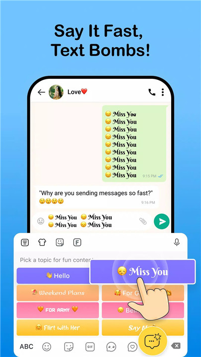 Easily send multiple messages to bombard your friends without typing multiple messages with the Text Bomb feature.
