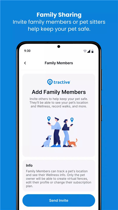 Tractive makes it easy to share your pet’s real-time location with friends, family, or pet sitters. In the case that your pet runs off, you can quickly share their whereabouts and get the help you need to bring them back home safely.
