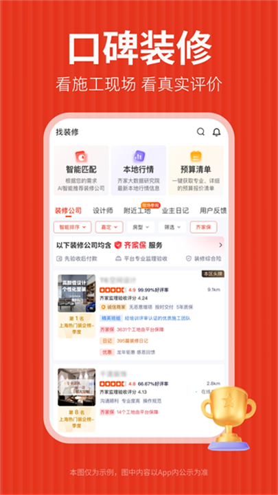 齐家装修App将设计、施工、材料采购、购物、保障等一站式服务完美融合,让你可以轻松应对装修过程中的每一个环节。想要装修轻松又不失创意?齐家装修App,帮你实现梦想中的家!