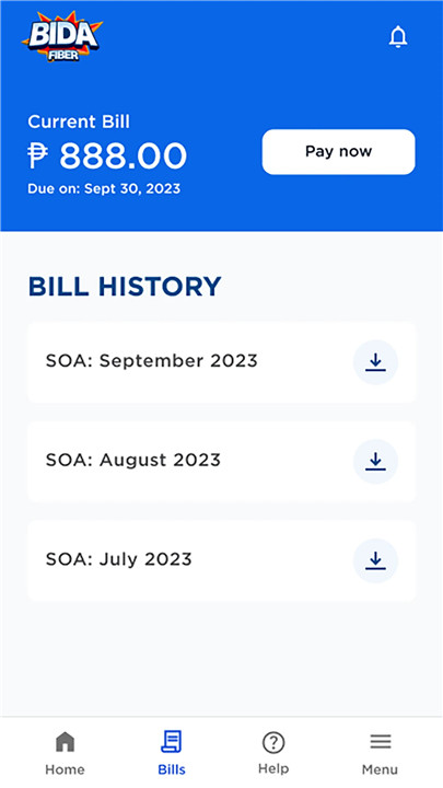 Access a summary of your payment due, along with a downloadable Statement of Accounts. You can also view your billing and payment history, including plan name, due date, previous balance, current charges, total amount due, and billing period—all on one page.