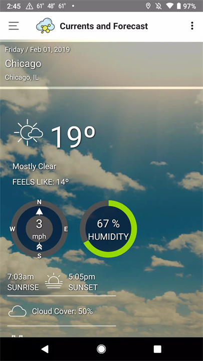 精准天气数据:您可以根据所在城市、邮政编码或GPS位置查看实时天气状况,以及详细的未来天气预报,帮助您精准规划每一天的出行与活动。